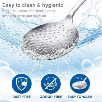 - Comfortable grip handle – Long handle keeps hands safely away from hot oil and ensures steady control while frying.