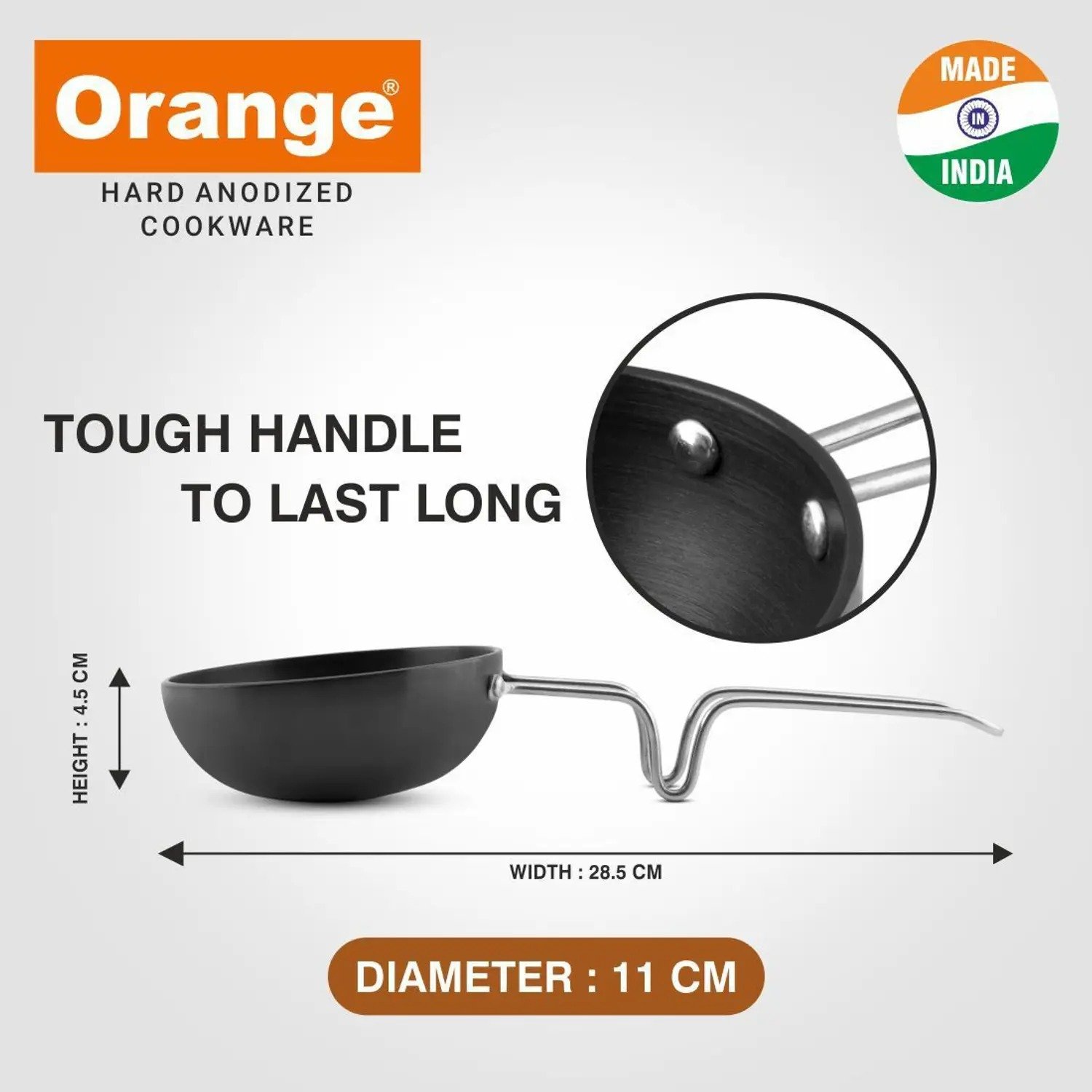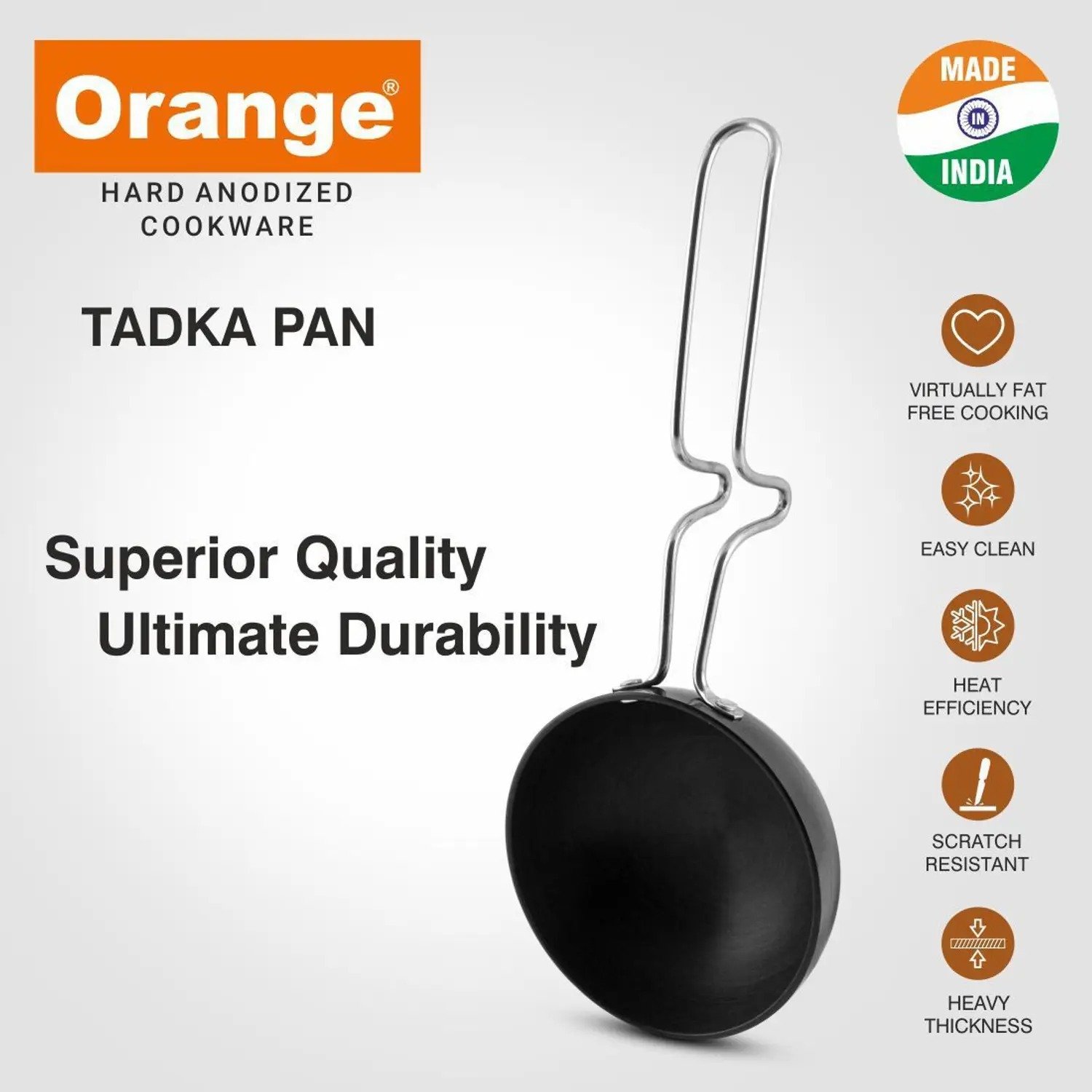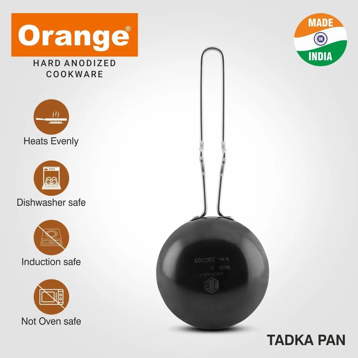 ORANGE ORANGE Aluminium Hard Anodized Tadka Pan / Vagharia 3mm Tadka Pan 11 cm diameter 0.35 L capacity