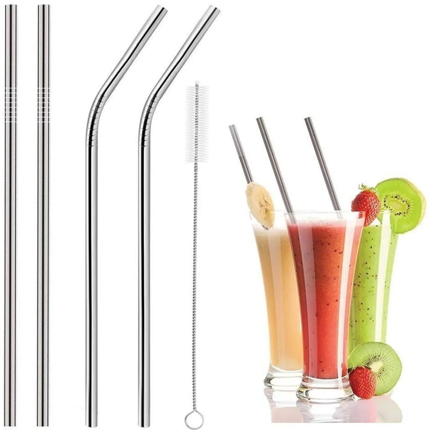 4 PCS Reusable Stainless Steel Straws With 1 Cleaning Brush Eco-friendly Silver Color Drinking Straws
